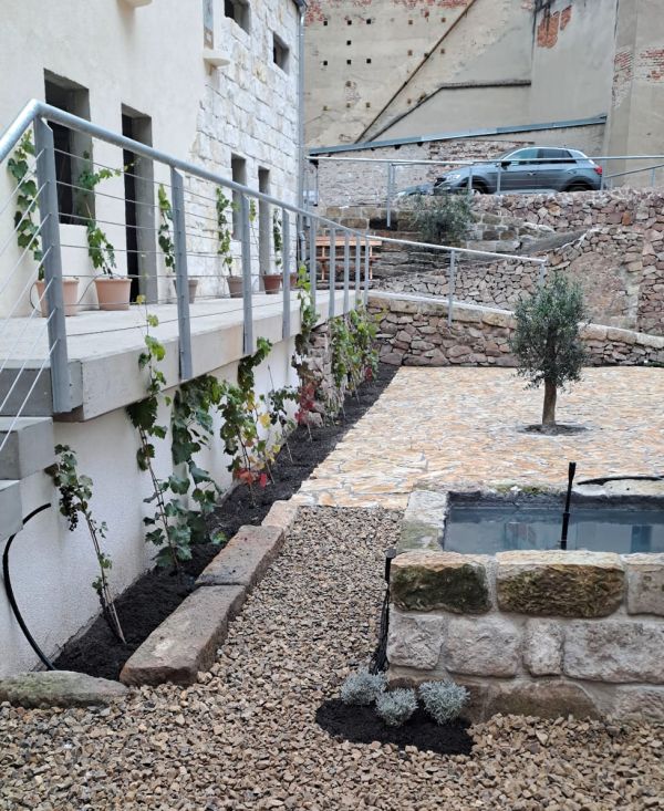 Deshalb wurde der Hof mit der Terrasse am Lokal aufwendig im mallorcinischen Stil mit Brunnen, Wein- und Olivenbäumen angelegt.