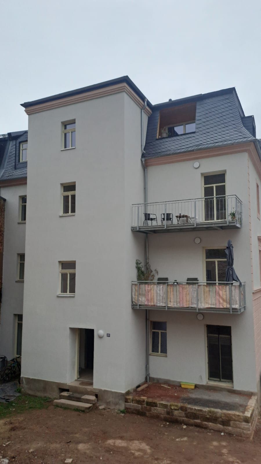Das Palais am Steinberg wird durch die Sanierung des Gebäudes Talstr. 89 ergänzt und vollendet. Ein neuer Dachstuhl und große helle Räume schaffen ein behagliches Zuhause.